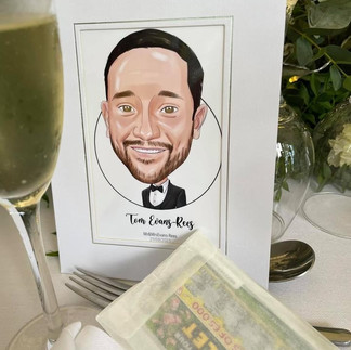 Sophie and Tom ordered caricature place cards and VIP Seating plan which included 2 very important guests. Sophie told me that her 2 little doggies Norah and Minnie had to feature on the seating otherwise it wouldn’t feel completed Without them.